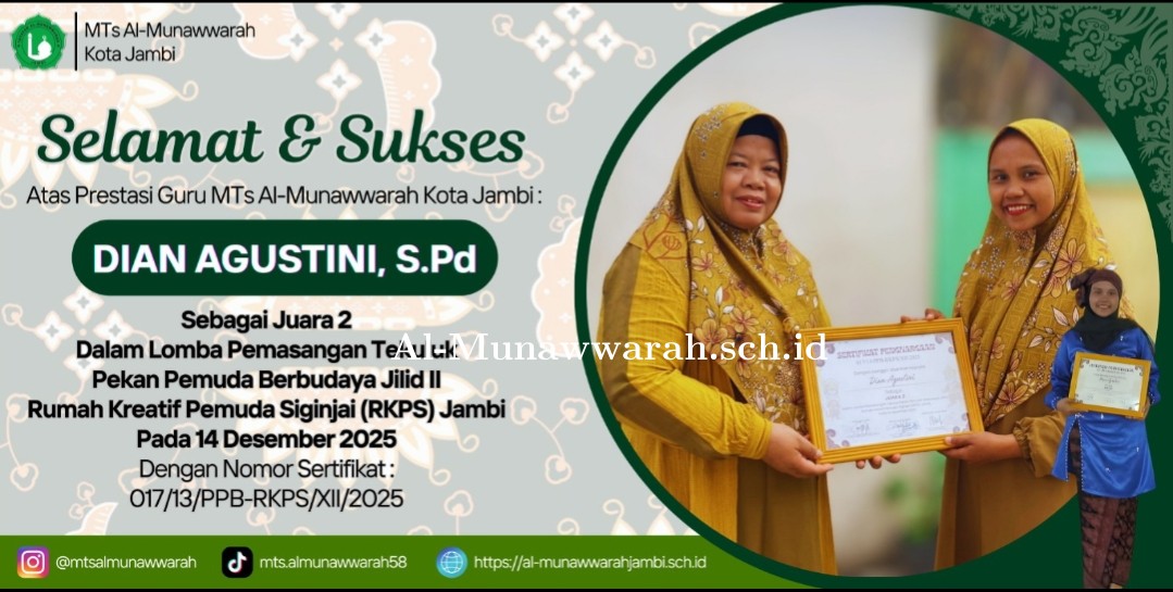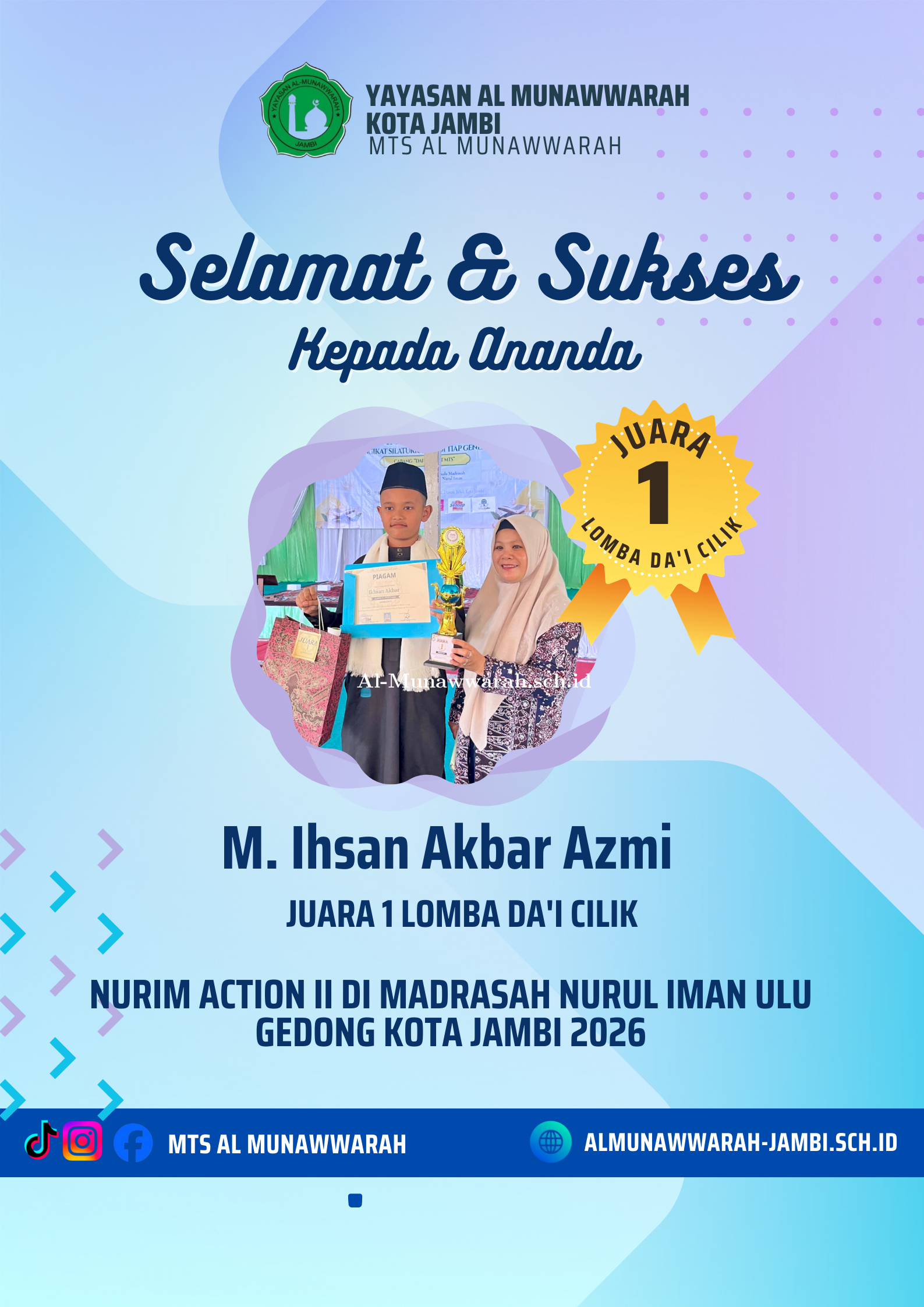 Selamat dan Sukses Kepada Siswa MTs Al Munawwarah Kota Jambi Ananda M. ihsan Akbar Azmi Juara 2 Lomba Da'i Cilik Pada NURIM . . . 0