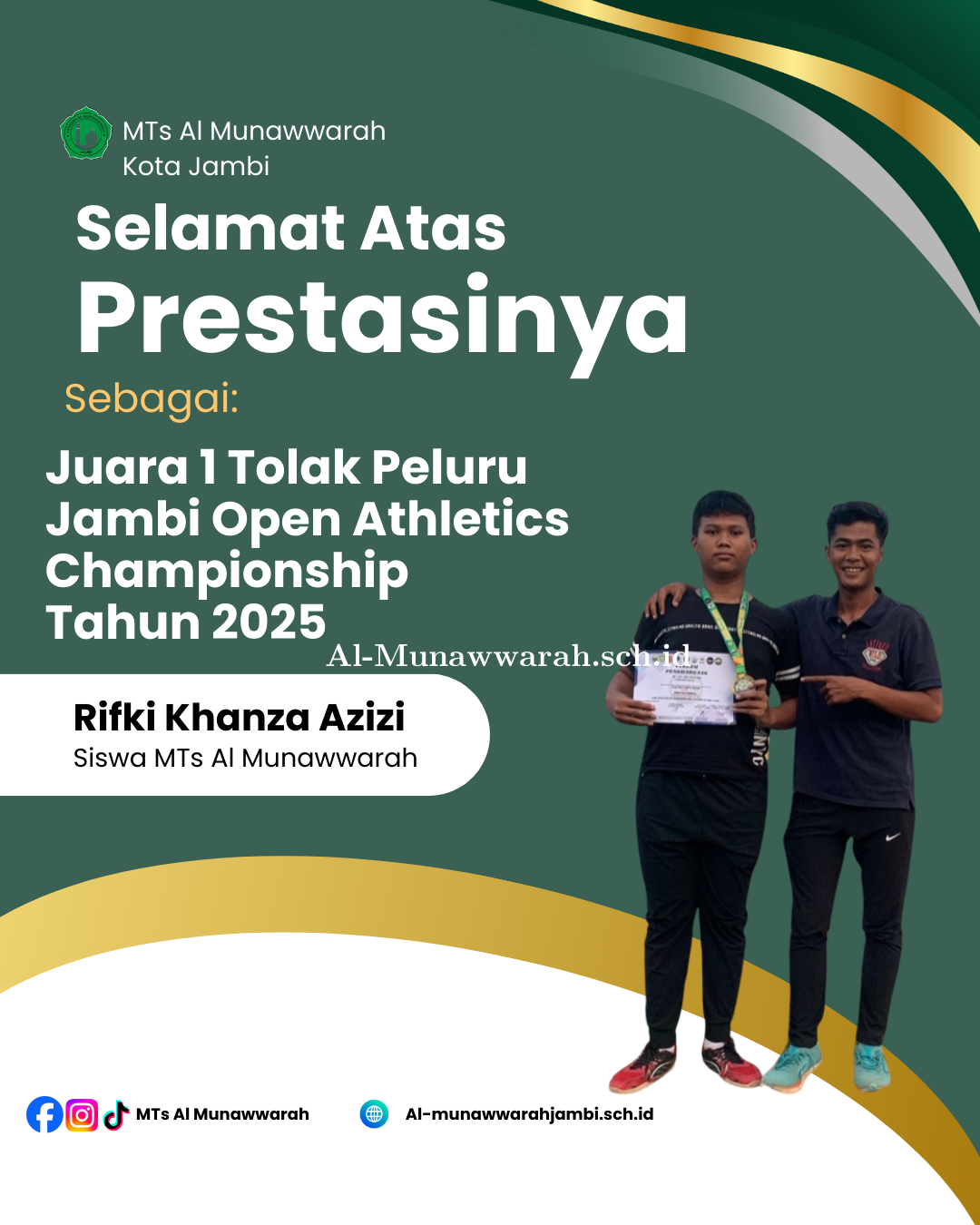 Jambi(Mts Al Munawwarah) Atlet muda MTs Al Munawwarah Kota Jambi, Rifqi Khanza Azizi, meraih juara I Tolak Peluru tingkat SMP . . . 0